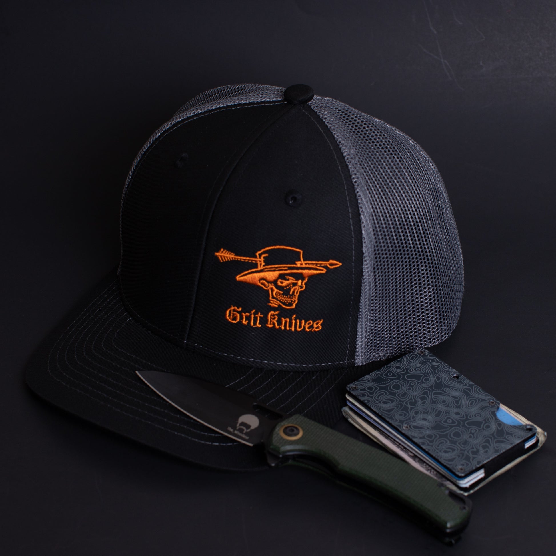 So if you're looking for a top-quality trucker cap that combines style and function, look no further than the Grit Knives branded mesh-back hat. Order yours today and experience the best in cap style and quality!