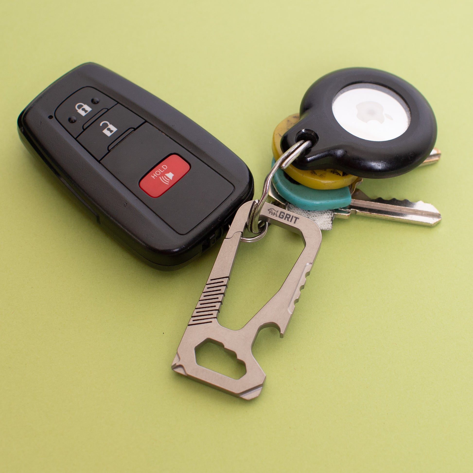 But wait, there's more! This isn't just any old carabiner—it's stacked with surprises like secret fishing spots in a remote mountain stream. Need to crack open a cold one after a long day on the trail? Bam! Bottle opener. Got a screw that needs tightening? Boom! Screwdriver. It's like having MacGyver in your pocket, but way cooler.