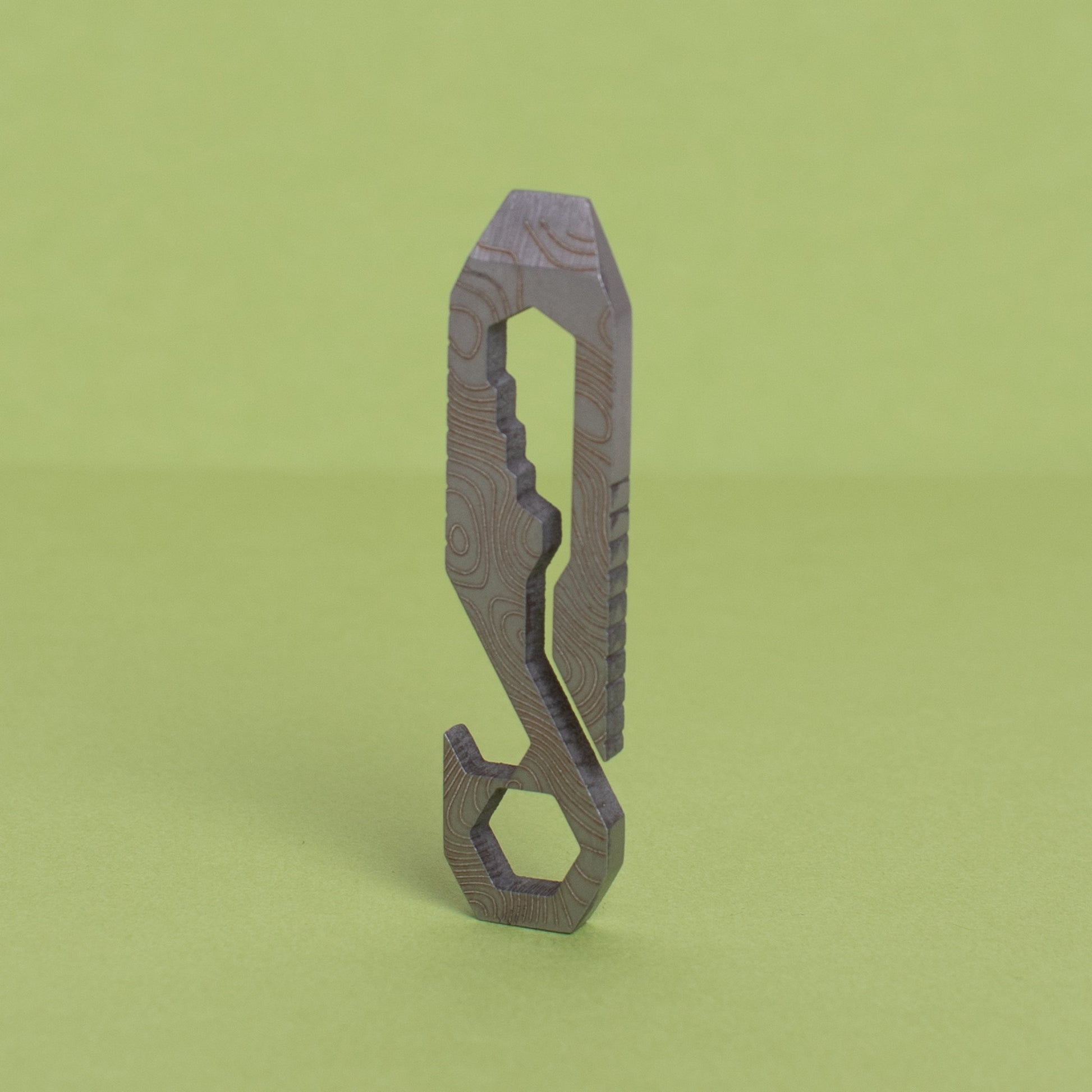 Crafted with TC4 titanium alloy, PryMate is lightweight yet durable, making it a reliable tool for daily use. And now, with the addition of the topographic pattern engraved on its surface, PryMate not only offers unparalleled functionality but also boasts a stylish and unique design.