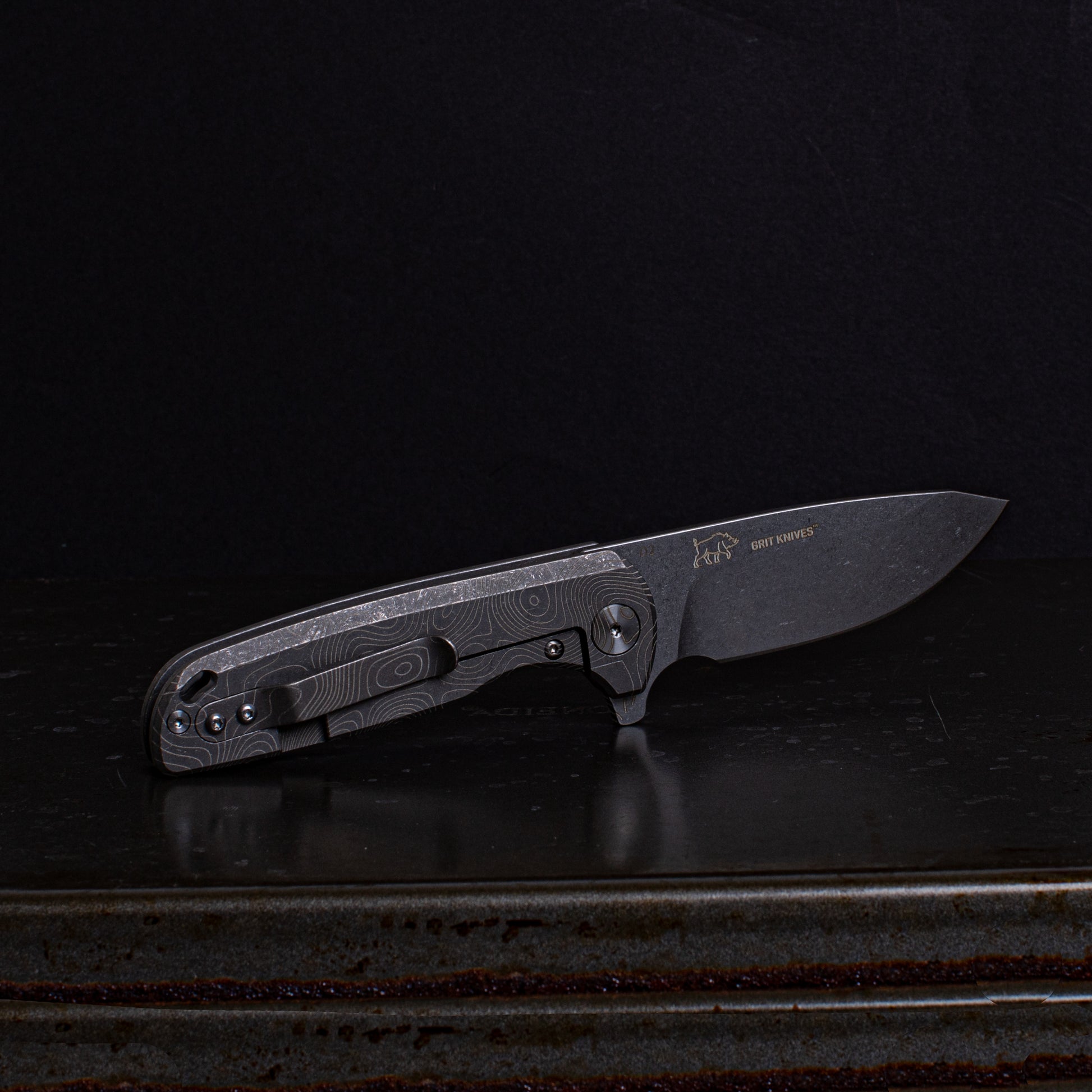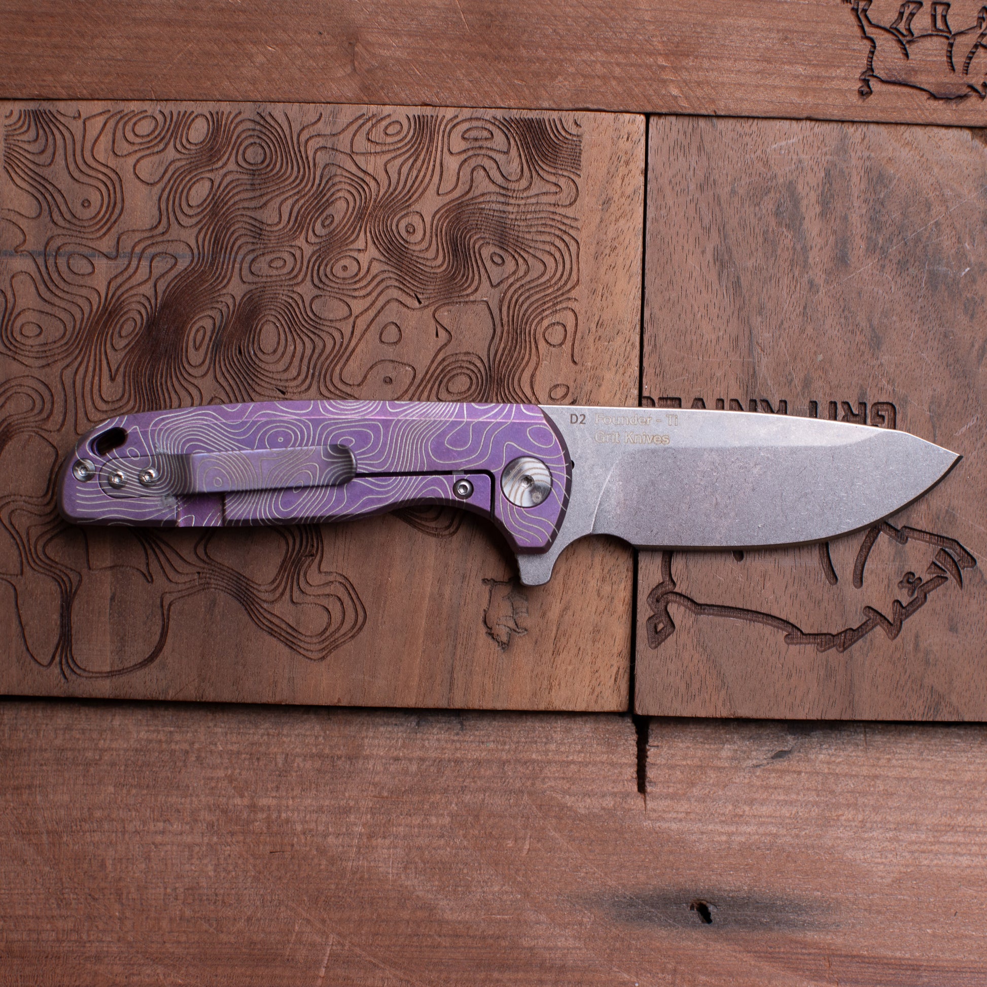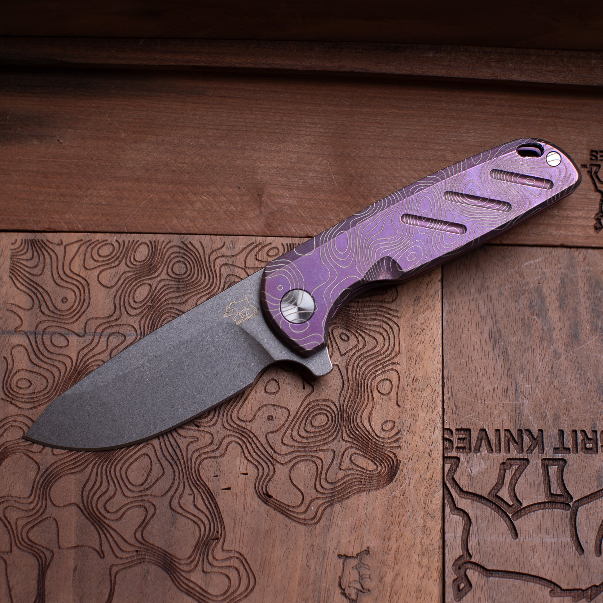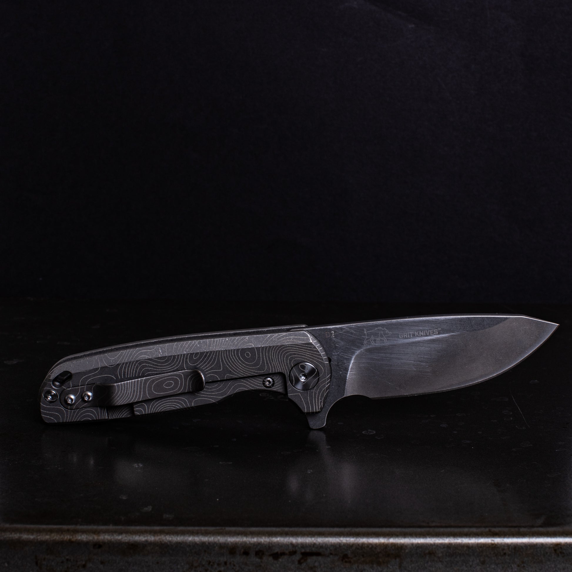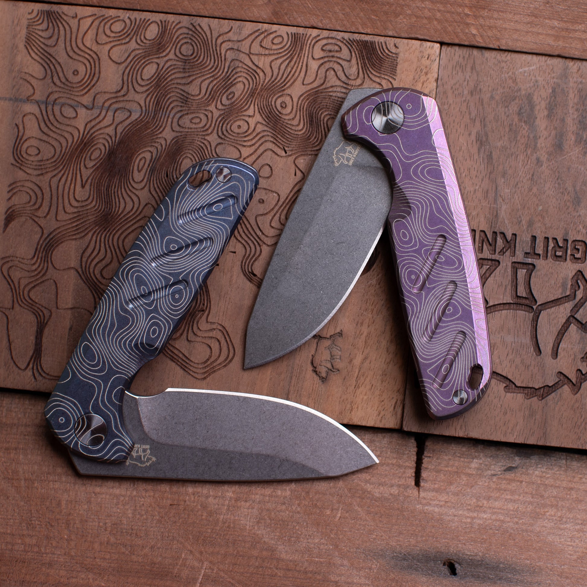 Introducing the limited edition The_Founder Ti² with a topo engraved handle, a truly exceptional knife that combines unparalleled beauty and functionality. This exquisite blade showcases a hardness rating of D2, meticulously polished to perfection through advanced CNC machining techniques. The meticulous polishing process enhances not only its cutting prowess but also its visual appeal, making it a true collector's item.