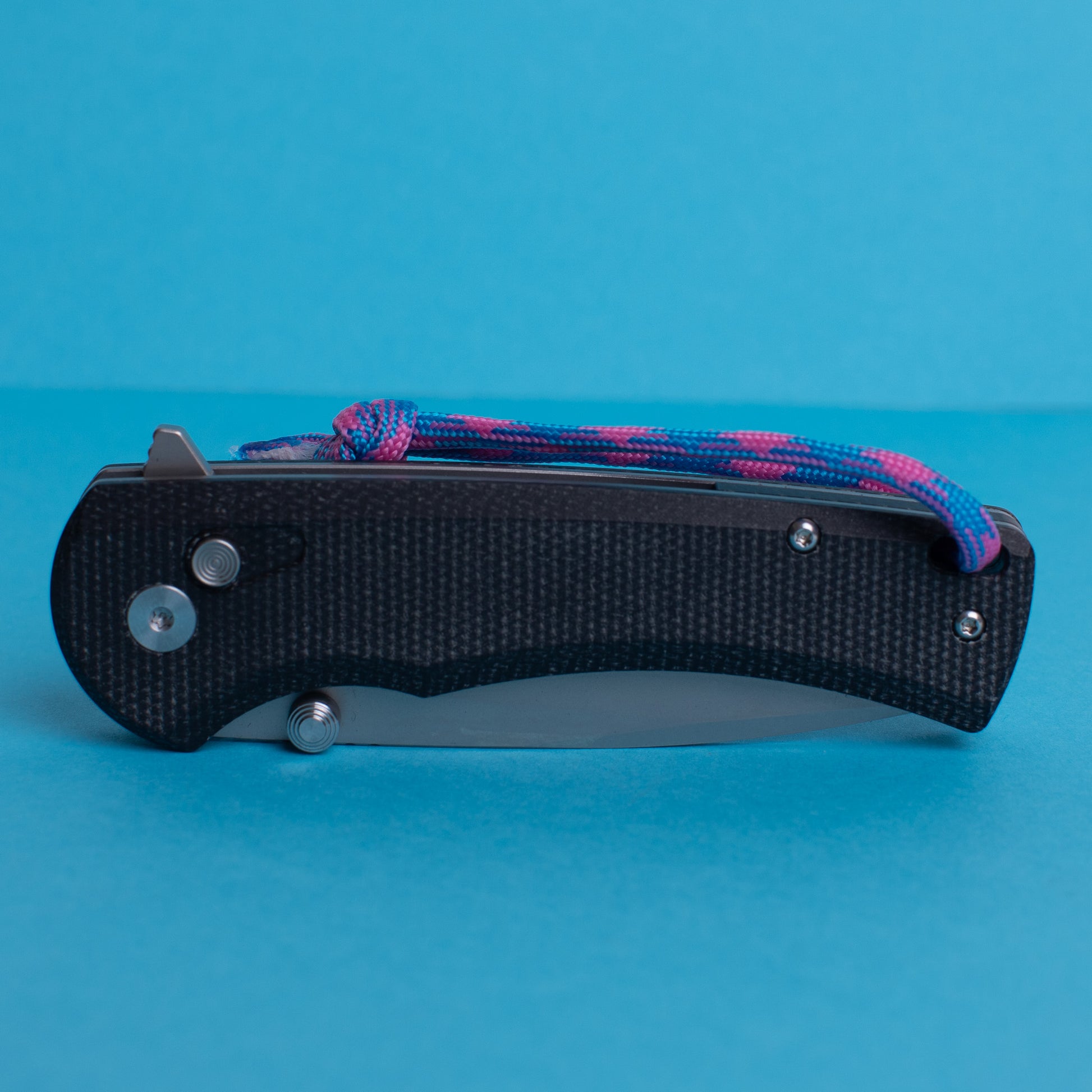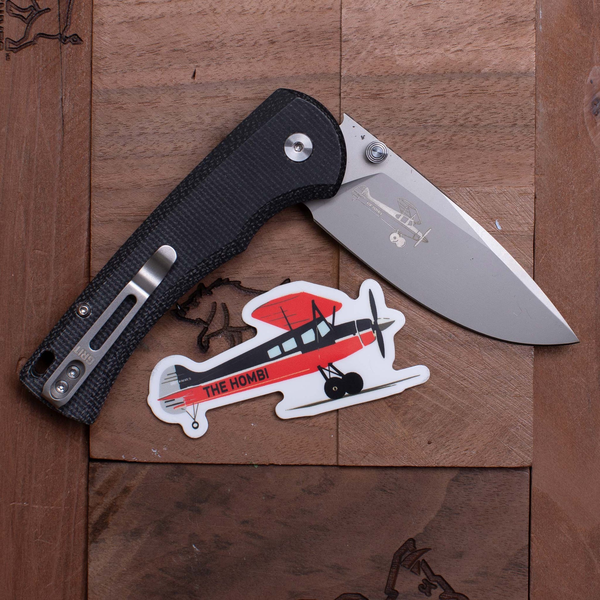 Introducing the Hombi: a foldable knife that pays homage to the spirit of adventure and resilience. Crafted with a sleek Micarta handle and featuring a durable 14C28N steel blade, this knife is designed to tackle any challenge. The button lock mechanism ensures easy and secure operation, while the deep pocket carry clip allows for discreet and convenient carry. Plus, it comes with a padded carrying case for added protection on your journeys. Whether you're navigating the wilderness or tackling everyday tasks, the Hombi is the perfect companion for those who appreciate quality craftsmanship and enduring performance. Join the legacy of exploration with the Hombi by your side.