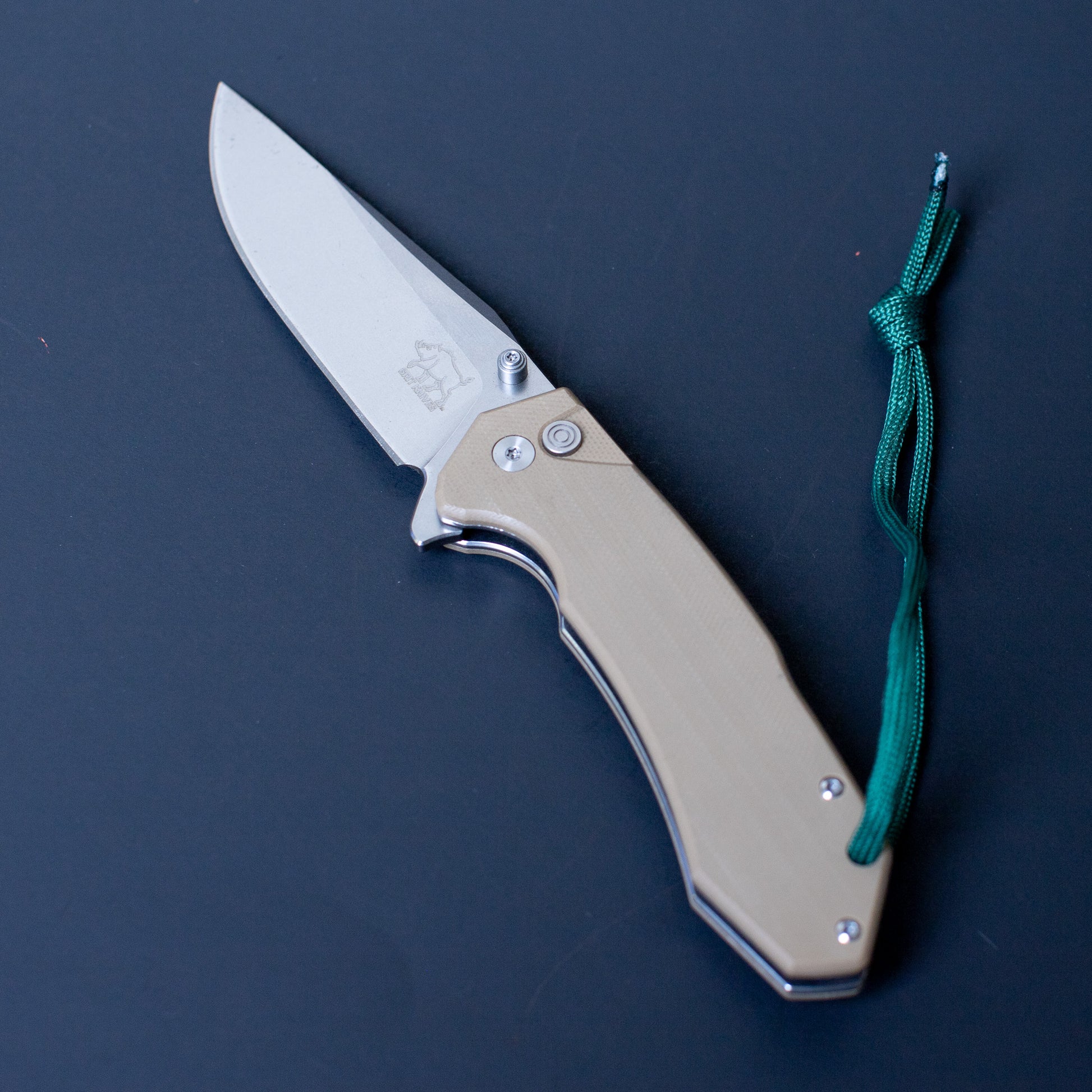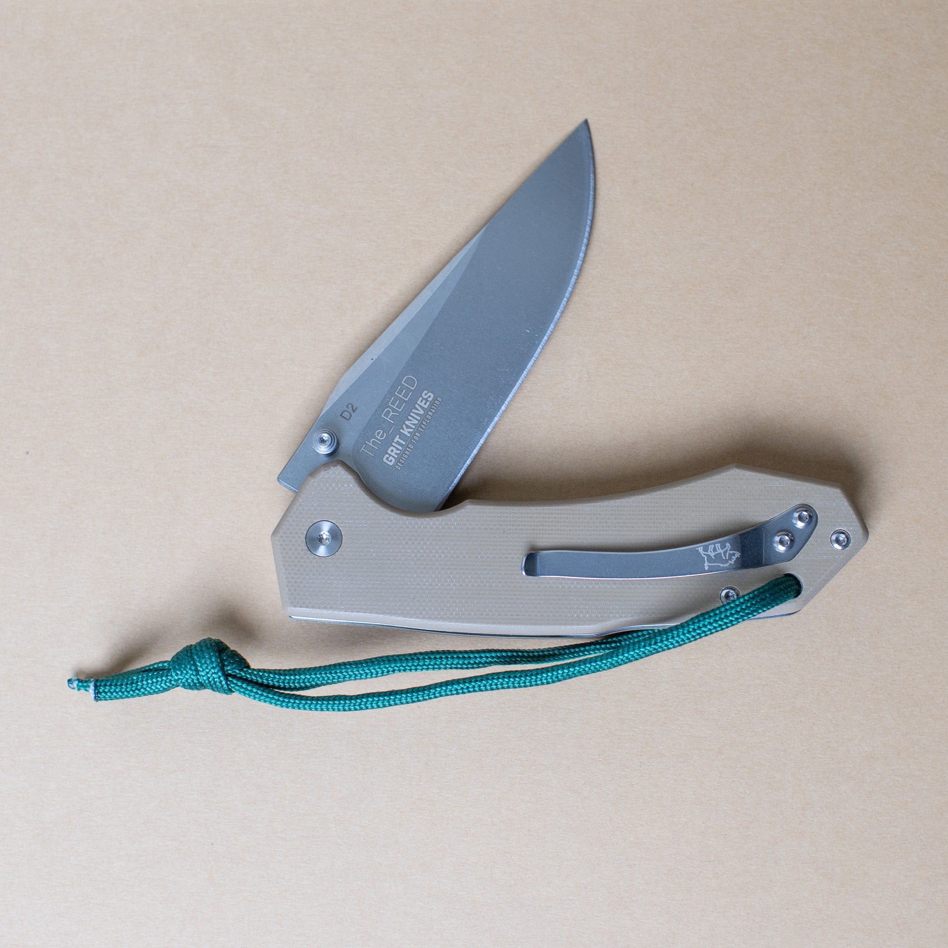 The Reed is a drop-point variation of The Abby, stripped down and field-ready with a no-nonsense desert sand G10 handle. It’s got the same smooth button-lock action and flipper tab for quick deployment, but trades the tanto point for a classic blade profile that’s better suited for skinning, slicing, and all-around utility.
