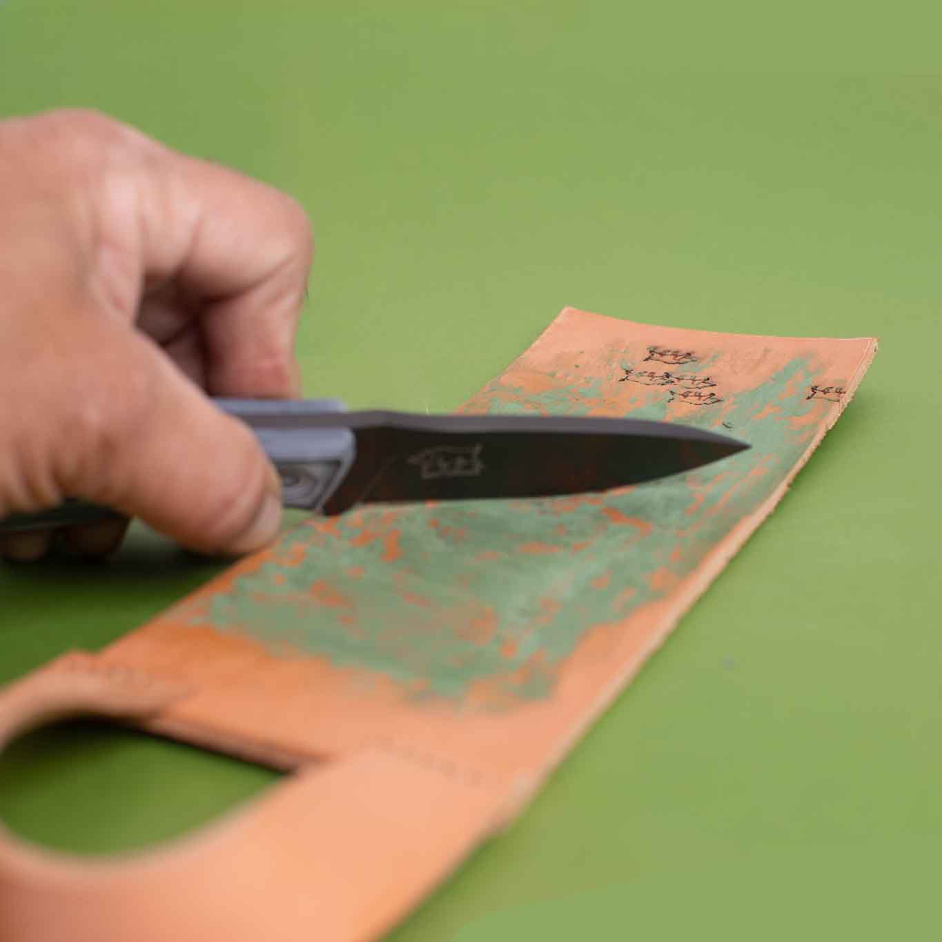 The Pioneer's Strop comes with four types of stropping compound, each designed to fine-tune your edge to perfection. Apply a light coat of compound on the strop, place your blade at the same angle as the edge, and pull it backward. Use gentle pressure, draw from heel to tip, and alternate 7-10 passes on each side. Your goal? Hair-popping sharpness.